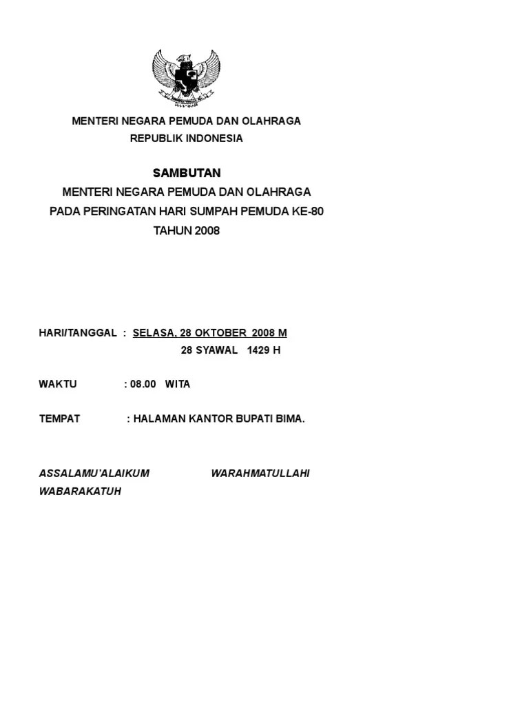 Karakter bangsa yang penuh semangat juang seakan redup. Hari sumpah pemuda merupakan titik balik perjuangan bangsa indonesia menuju kemerdekaan republik indonesia, pada 17 agustus 1945. Pidato generasi pemuda mudi indonesia singkat. Tidak sedikit pemuda dan pemudi penerus bangsa terjerumus kepada hal negatif. Contoh pidato bahasa jawa singkat tema lingkungan sekolah.